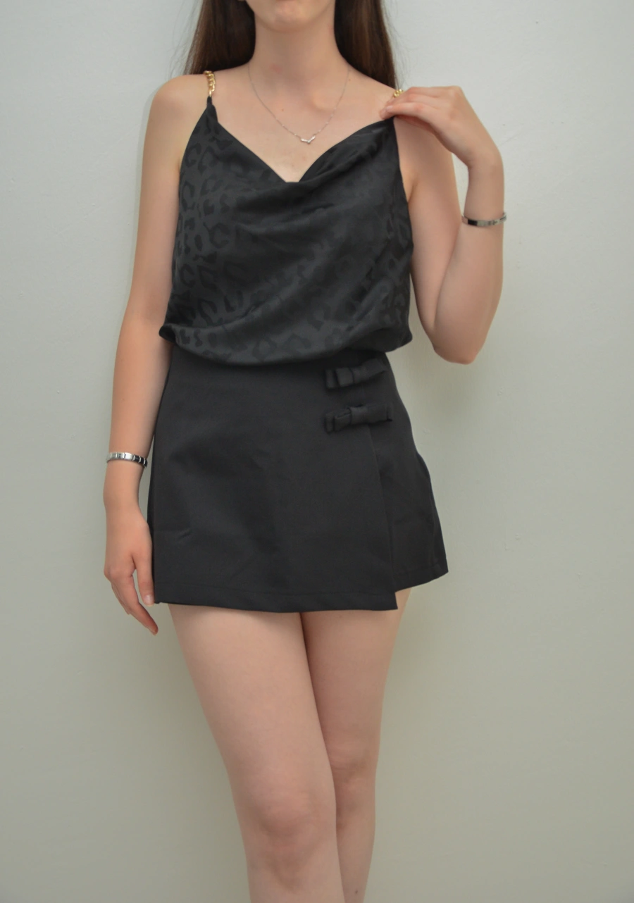 Pileli Mini Siyah Şort Etek